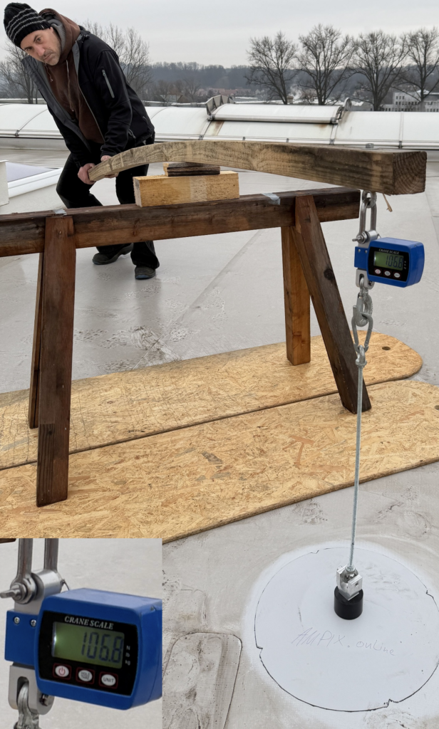Die Ermittlung der Tragfähigkeit Ihres Untergrundes ergeht über einen Zugversuch am Dach. Es wird Querschub und Zug getestet. Wir unterstützen Sie dabei.