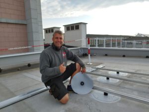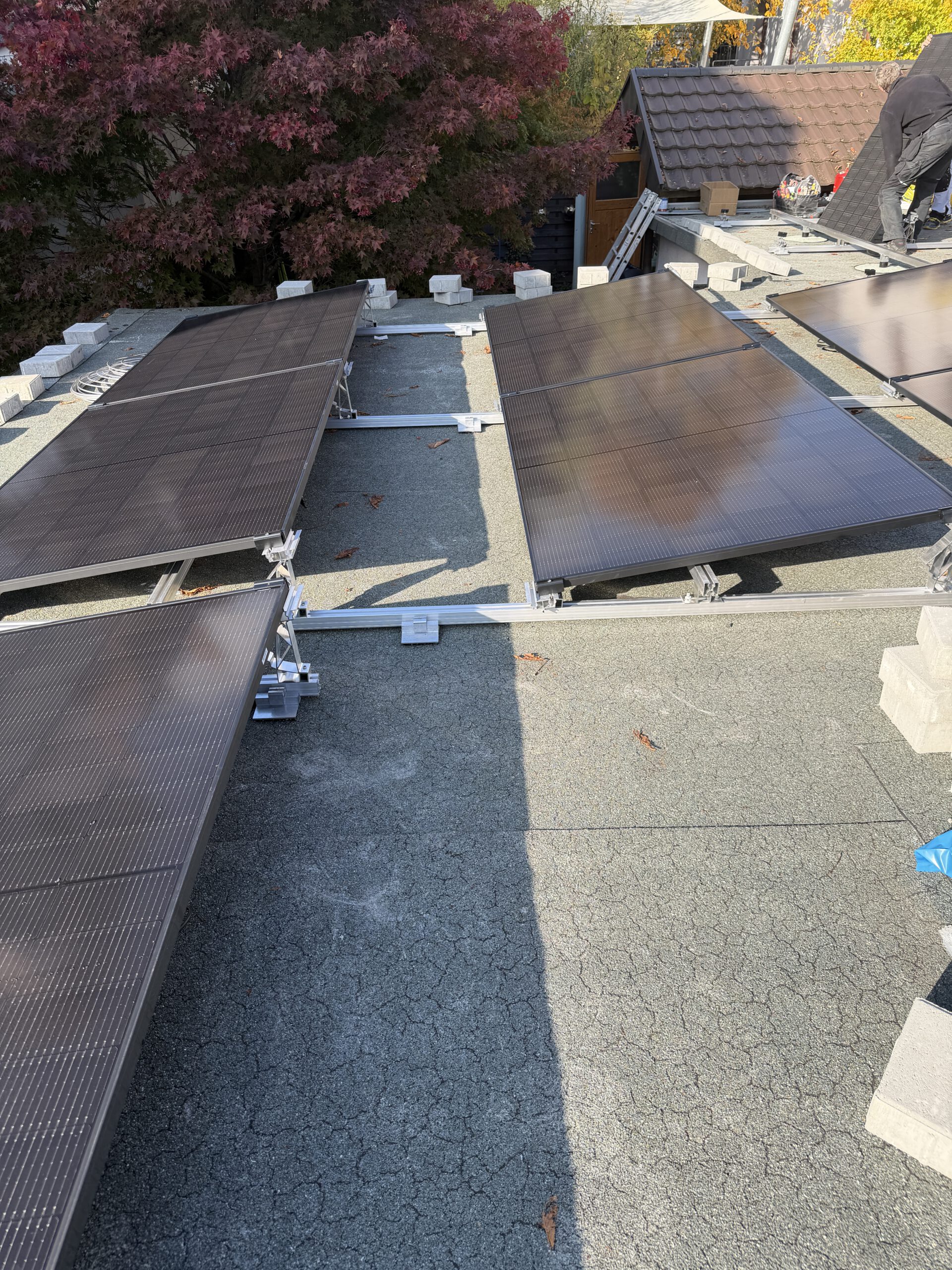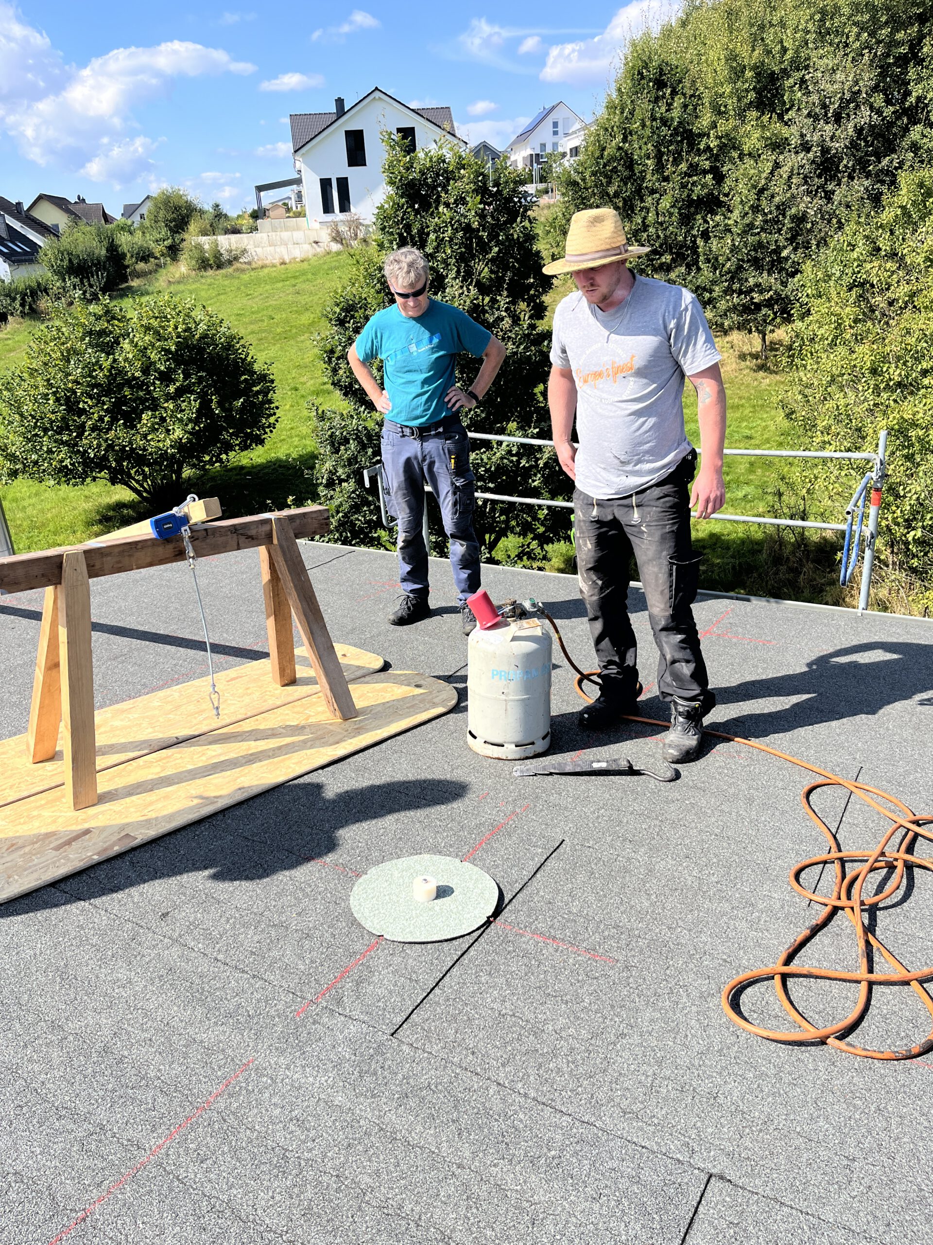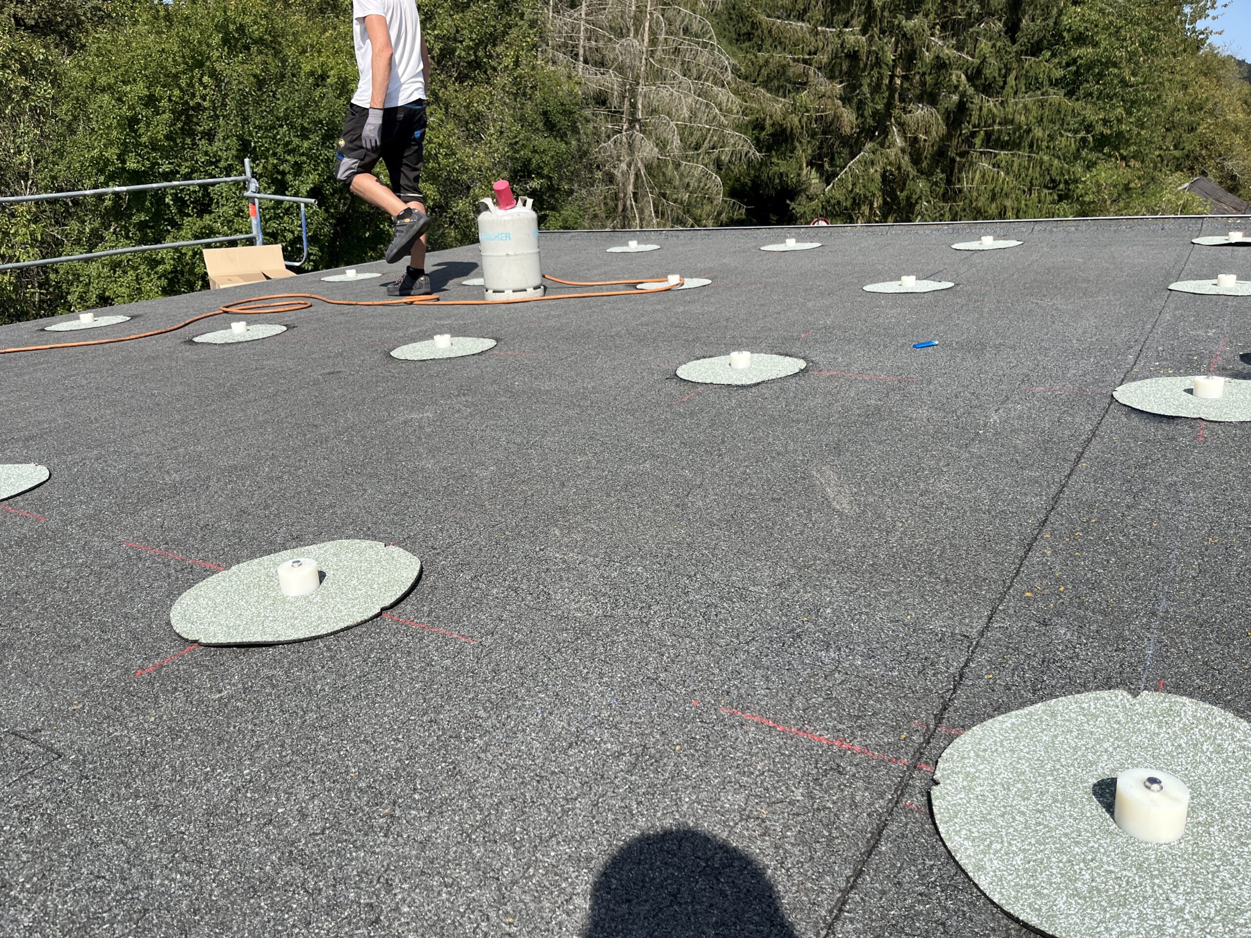Bei uns wird nicht einfach nur was aufgeklebt. Wir berufen uns bei der Montage des AMPIX® auf die Flachdachrichtlinie des ZVDH 2026, nach dieser Montagen auf der Abdichtung zulässig sind, insofern diese nicht zu Schäden führen können. Wir schädigen die Abdichtung mit unserem durchdringungsfreien System nicht. Wir setzen die Montage durch einen zertifizierten Dachdecker-Meisterbetrieb voraus. Es ist uns wichtig, dass die Dinge ordentlich geprüft und verantwortlich bewertet werden.