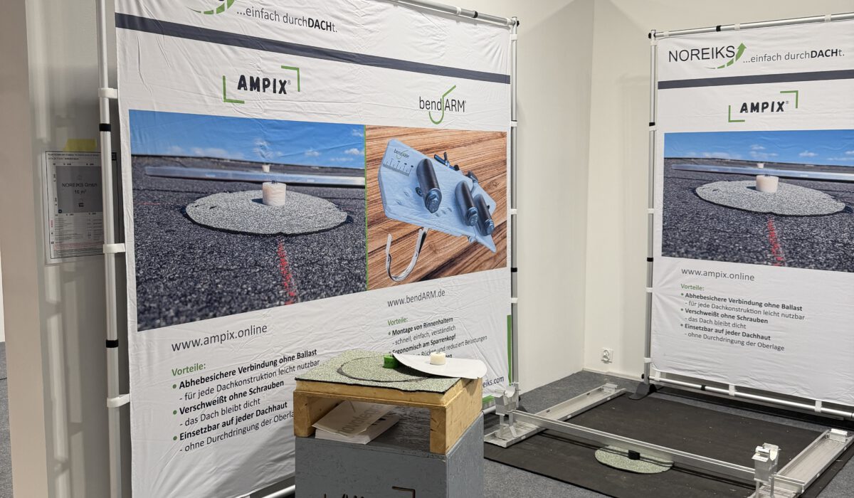 Die NOREIKS GmbH steht für innovative, praxisnahe Lösungen, die den Arbeitsalltag erleichtern und höchste Qualitätsstandards erfüllen. Mit AMPIX®, unserem einzigartigen Montagesystem für Flachdächer, ermöglichen wir eine abhebesichere Befestigung ohne Ballast und ohne Durchdringung der Dachhaut – ganz ohne Schrauben. Dadurch bleibt die Bausubstanz unversehrt, und schwere Betonsteine gehören der Vergangenheit an.